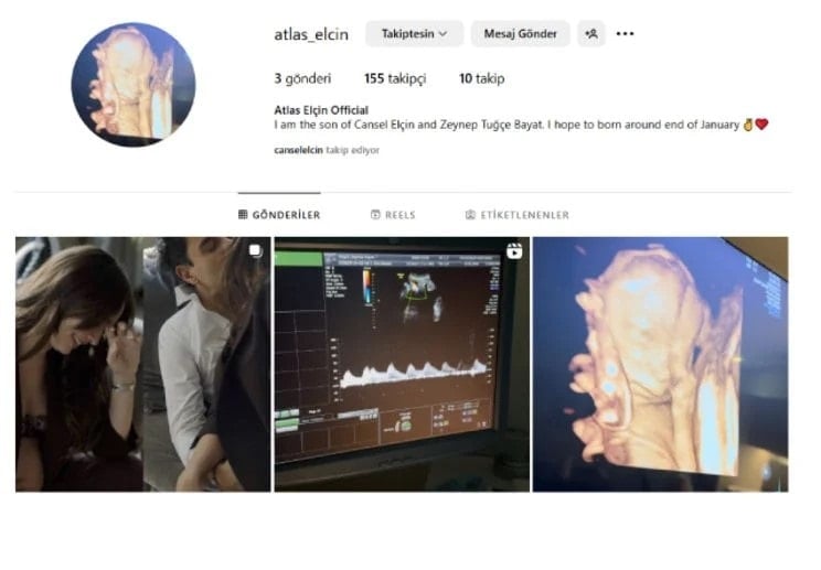 Bebeklerinin profil fotoğrafına ultrason fotoğrafını koyan çift, biyografi kısmına ise “Cansel Elçin ve Zeynep Tuğçe Bayat’ın oğluyum. Ocak ayının sonunda doğmayı planlıyorum” notunu düşmüştü.