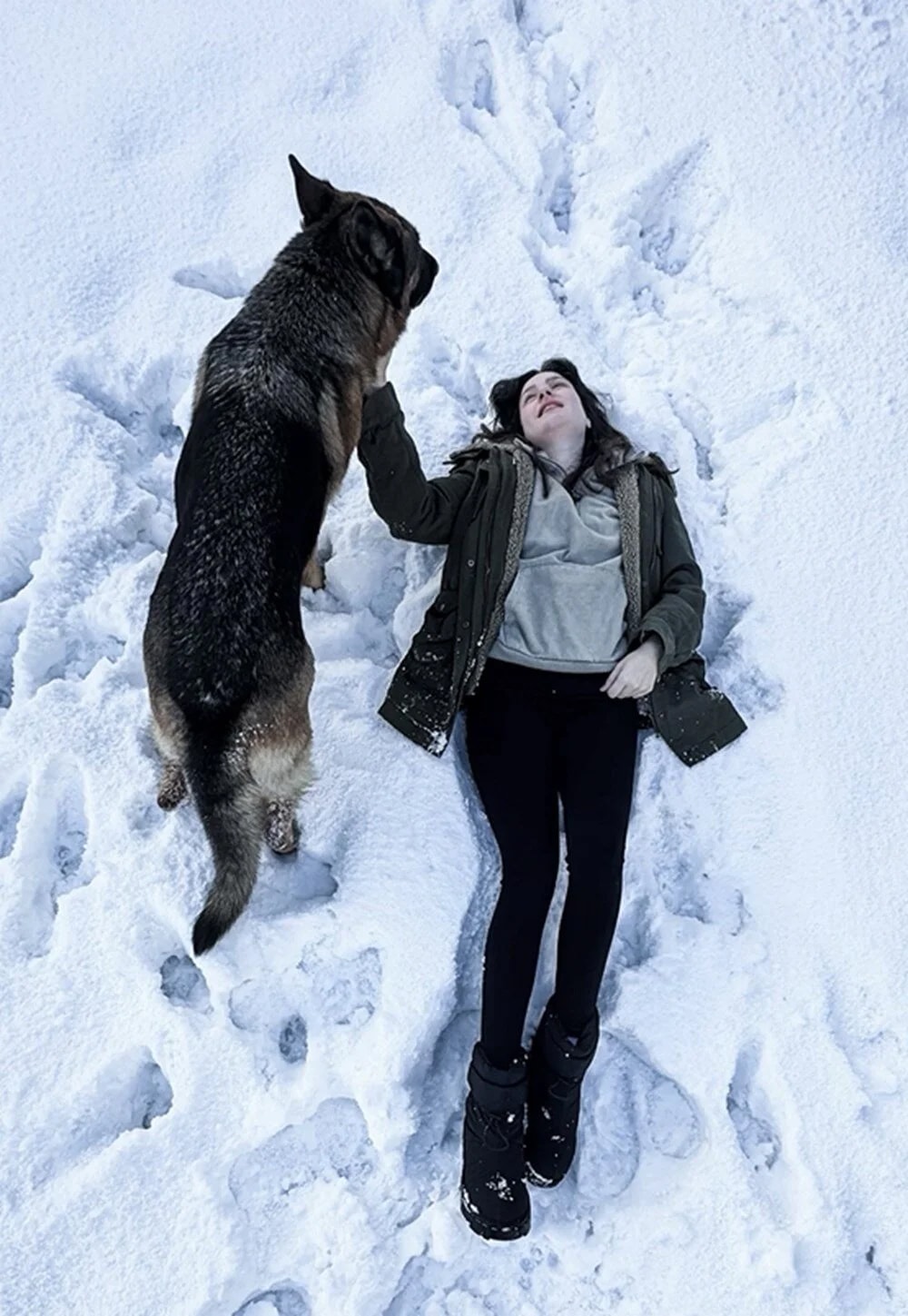 Yalabık, dizayncı sevgilisi Prensip Beyaz’ın karlar üstünde yatarken verdiği pozu Instagram hesabından paylaştı.