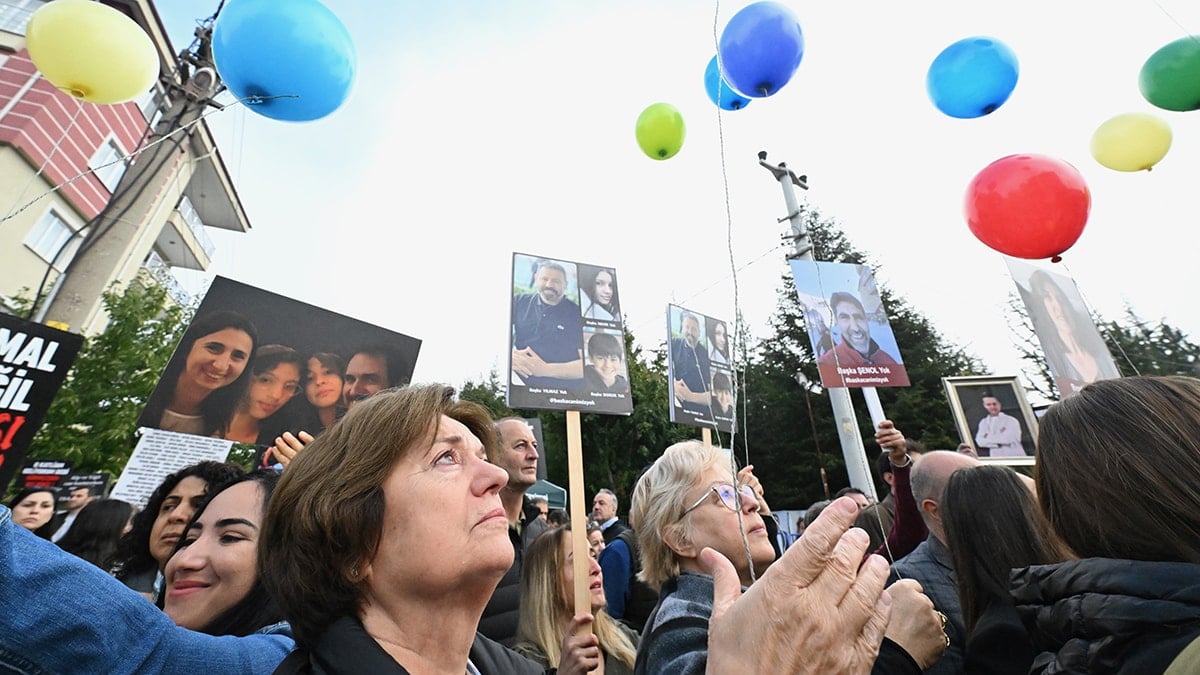 Aileler duruşma öncesi 78 adet renkli balonu uçurdu. Yangında çocukları ve torunları da olmak üzere toplam 8 yakınını kaybeden Yüksel Gültekin “Ben daima evlatlarımın mezarlarına daima balon asıyorum. Burada da temsili olarak da bu balonları havalandırıyoruz artık. İnşallah onlar bizi duyuyorlardır” dedi.