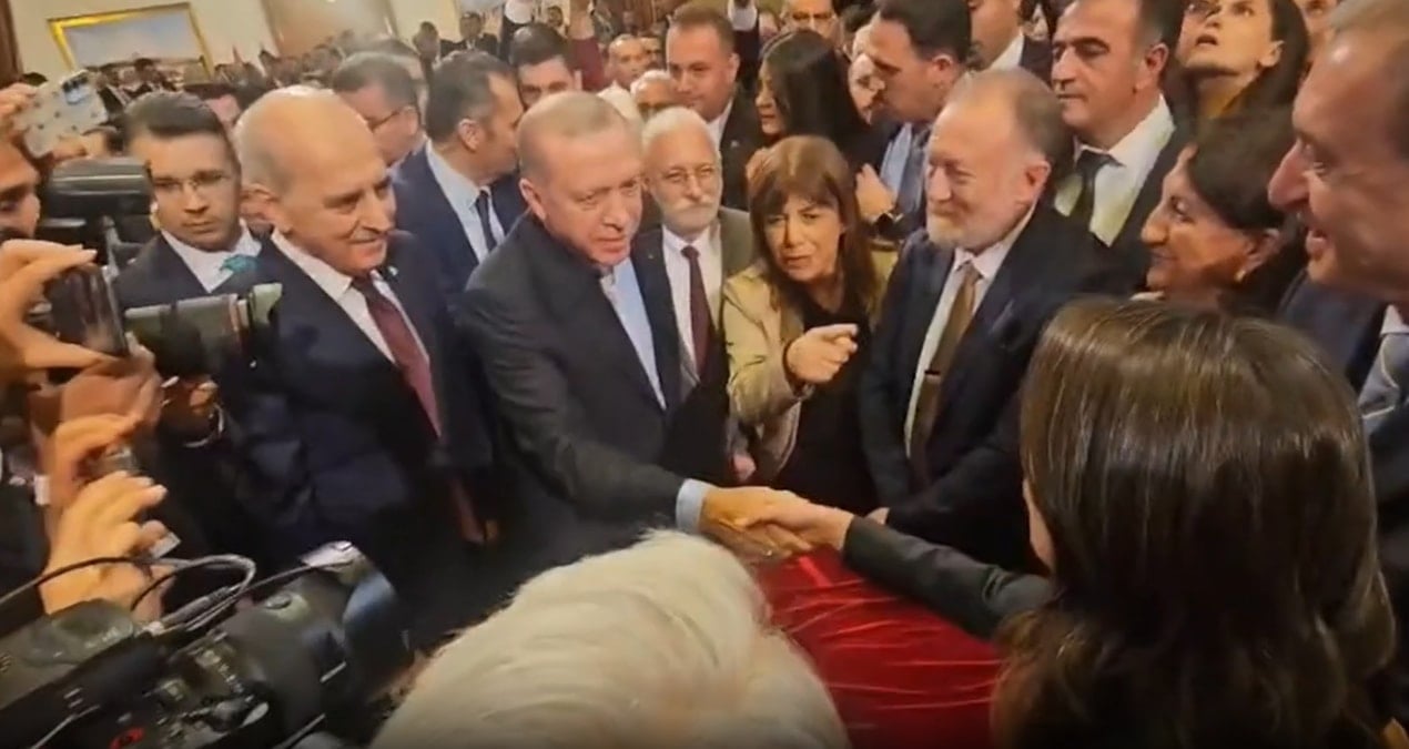Cumhurbaşkanı Recep Tayyip Erdoğan, Meclis 28’inci Periyot 4’üncü Yasama Yılı açılış oturumunda yaptığı konuşmanın akabinde Halkların Eşitlik ve Demokrasi Partisi (DEM Parti) kümesine giderek el sıkıştı. Erdoğan, el sıkışma sırasında, DEM Parti Eş Genel Lideri Tülay Hatimoğulları ve DEM Parti Küme Başkanvekili Sezai Temelli’nin elini sıkmadı. Daha sonra DEM Parti Heyeti ile bir ortaya gelen Erdoğan, ellerini sıkmadığı için DEM Parti Eş Genel Lideri Tülay Hatimoğulları’na ve DEM Parti Küme Başkanvekili Sezai Temelli’ye özürlerini iletti.