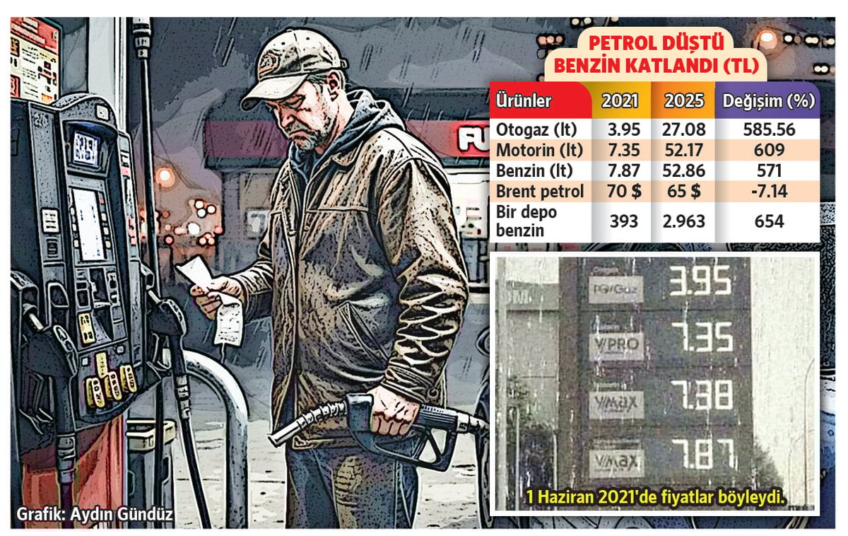 ‘Faiz sebep enflasyon sonuç’ tezi ile derinleşen ekonomik kriz Türkiye’de fiyatları katladı. Milyonlar çift haneli akaryakıt fiyatlarına, milyon TL’lere satılan otomobillere alıştı. Halbuki akaryakıtın çift haneye yaklaştığı periyotlar çok değil yaklaşık 4 yıl önceydi. 2021’de 7-8 TL aralığında olan akaryakıt fiyatları ortadan geçen 4 yılda uygulanan akıl dışı iktisat siyasetleri ile bugün tam yüzde 571 zamlanarak 52.86 liraya yükseldi. Akaryakıta art geriye gelen artırımlar ve vergi artışları nedeniyle otomobilin deposunu doldurmak 2021’den bu yana 2 bin liradan fazla artış gösterdi.