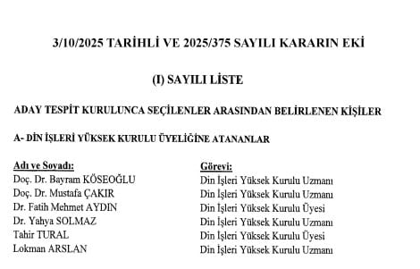 Resmi Gazete yayınlandı. Diyanet İşleri Lideri’nin değişmesinin akabinde eski Lider Ali Erbaş periyodunda misyon alan takım da değilti. Öte yandan Din İşleri Yüksek Şurası’na yeni atamalar yapıldı.