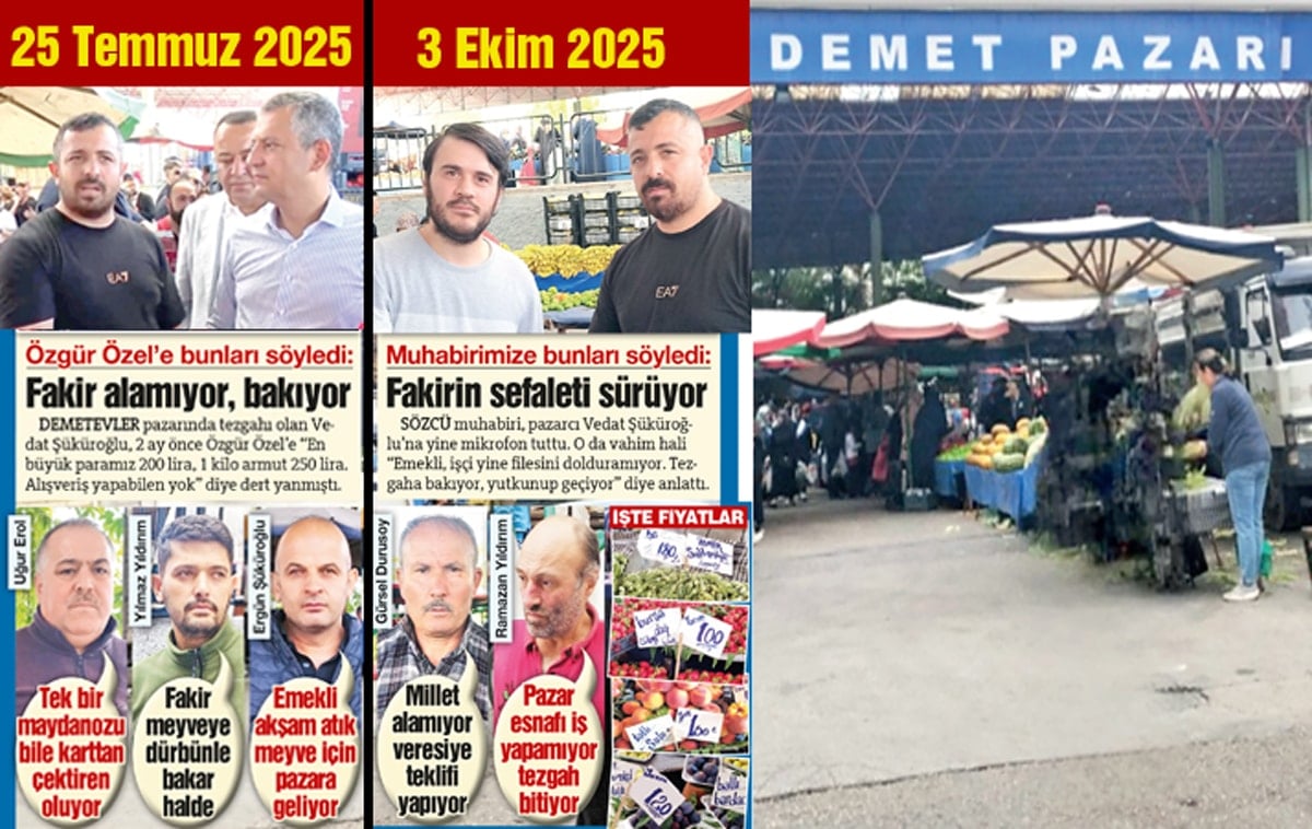 SÖZCÜ, yaklaşık iki buçuk ay sonra birebir pazara gitti ve Özel ile konuşan esnafı dinledi. Şüküroğlu, “Özgür Özel’e gerçekleri anlattım. O günden bu yana değişen bir şey yok. Meyve, zerzevat atıklarını toplayanların sayısı her hafta artıyor. Bu maaşlarla vatandaş geçinemez, pazardan alışveriş yapamaz, kahveye gidip çay içemez, pastanede kahvaltı edemez’’ diye konuştu.