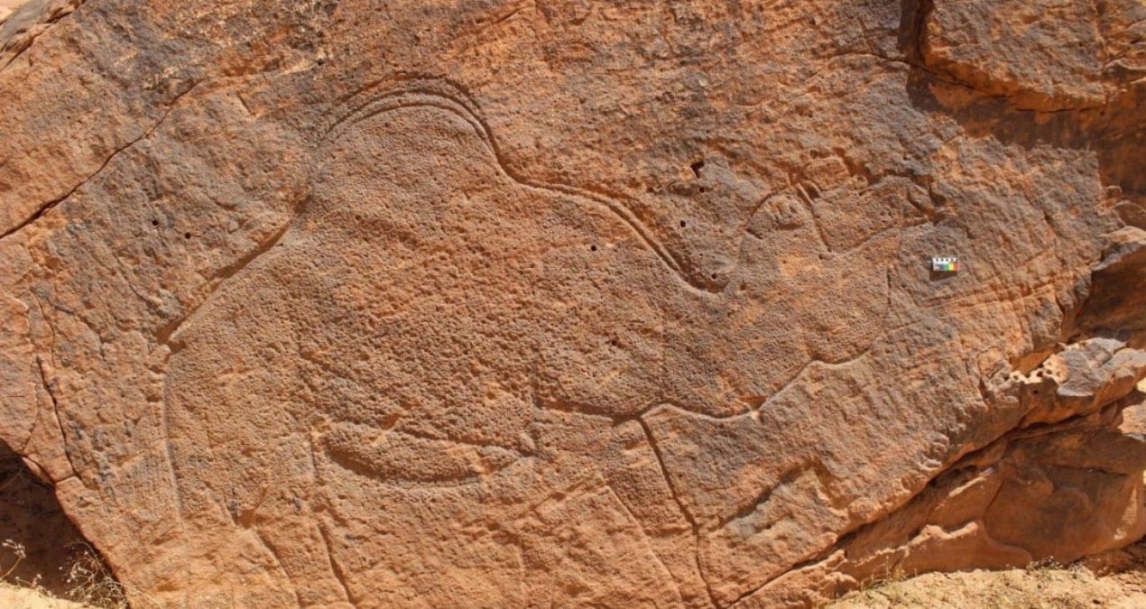Almanya’daki Max Planck Jeoantropoloji Enstitüsü’nden Maria Guagnin ve grubu, Nefud Çölü yakınlarındaki devasa kaya sanatıyla ilgili amatör arkeologların ipuçlarını takip ederek yeni ispatlara ulaştı. Üç hafriyat alanında toplam 176 kaya oyması tespit edildi. Kimileri, 40 metreyi bulan dev uçurum yüzeylerine kazınmış ve çoğunlukla hayvanları birebir boyutlarında betimliyordu.