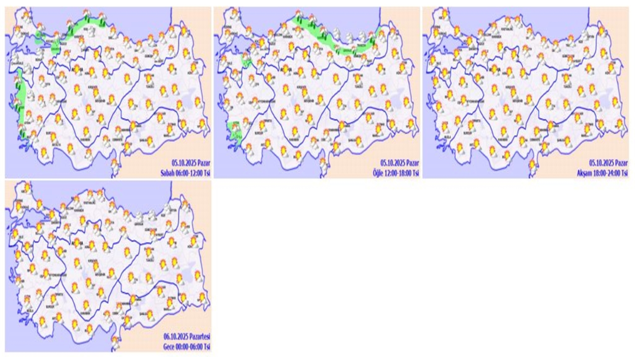 Meteoroloji Genel Müdürlüğü tarafından yapılan kestirimlere nazaran; bugün yurdun kuzey ve batı kesitlerinin kesimli, yer yer çok bulutlu, Kıyı Ege, İstanbul, Sakarya, Bursa, Zonguldak, Bartın, Sinop, Samsun ve Rize etrafları, Ordu’nun, Giresun’un ve Trabzon’un iç kesitleri ile Kastamonu’nun ve Artvin’in kıyı kısımlarının yağmur ve sağanak yağışlı, başka bölgelerin az bulutlu ve açık geçeceği bekleniyor. Hava sıcaklığının, batı bölümlerde mevsim normalleri civarında, öteki yerlerde mevsim normallerinin üzerinde seyretmesi bekleniyor. Rüzgarın da ekseriyetle güney istikametlerden hafif, orta sıra orta kuvvette eseceği kestirim ediliyor. Bugün için aktüel bir meteorolojik ihtar bulunmuyor.
