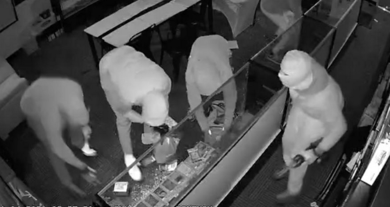 Maskeli beş kuşkulu elektrikli bir testere kullanarak dükkanın kapısını kırmayı başardı. Güvenlik kameralarına yansıyan manzaralarda hırsızların çalan alarmlara aldırış etmeden cam vitrinleri parçaladığı görüldü.