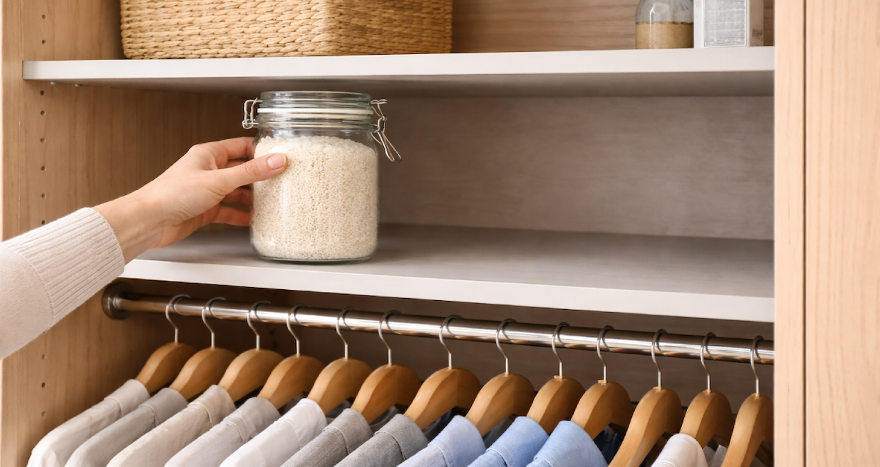 Bir kavanoz ya da küçük bir bez torba içine pirinç koyup dolaba koyun. Bilhassa soğuk havalarla birlikte bu formül iç yerlerde yaşanan nem oranını büyük bir ölçüde azaltacaktır.