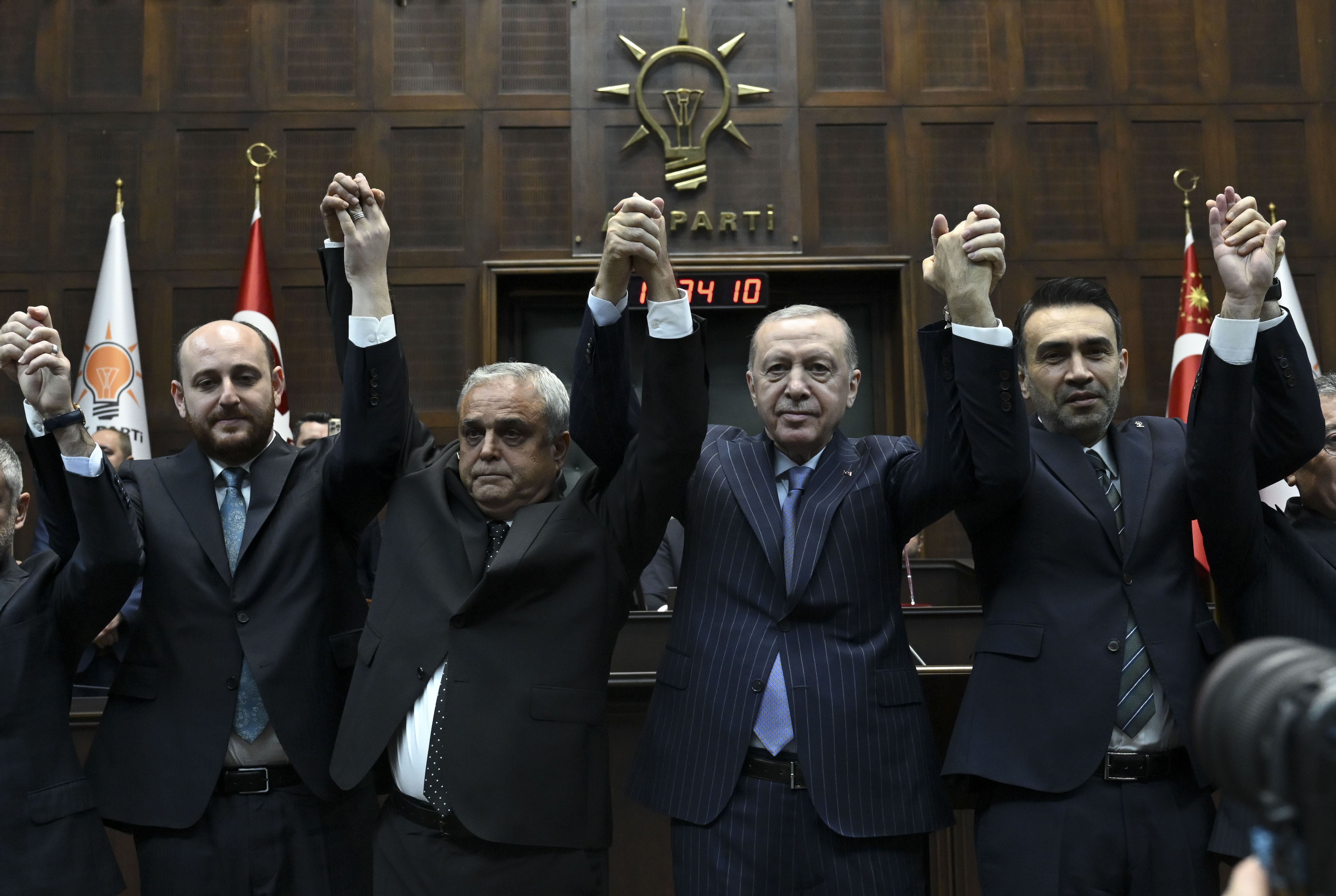AKP’nin Meclis’teki sandalye sayısı 275’e yükseldi. Cumhurbaşkanı ve AKP Genel Başkanı Recep Tayyip Erdoğan, partisinin grup toplantısında Gelecek Partisi, CHP ve DEVA Partisi’nden istifa eden üç milletvekiline parti rozetlerini taktı.