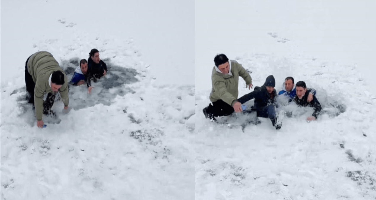 Çaykara ilçesindeki Uzungöl’e giden Tarık Buğra Kaycı (25), Berat Küskün (25) ve Miraç Yazıcı (25) soğuk hava nedeniyle yüzeyi buz tutan Haldizen Deresi üzerinde zıplayarak görüntü çekmek istedi. Zıplayan kümeye kısa müddet sonra bir arkadaşları da dahil oldu. Fakat bu sırada buz kütlesi kırıldı, 4 kişi bir anda suya düştü. Arkadaş kümesi kendi imkanlarıyla sudan çıktı. O anlar, kıyıda bulunan arkadaşları tarafından cep telefonu kamerasıyla kayda alındı. Manzaralar, paylaşıldığı sanal medyada izleyenleri gülümsetti.