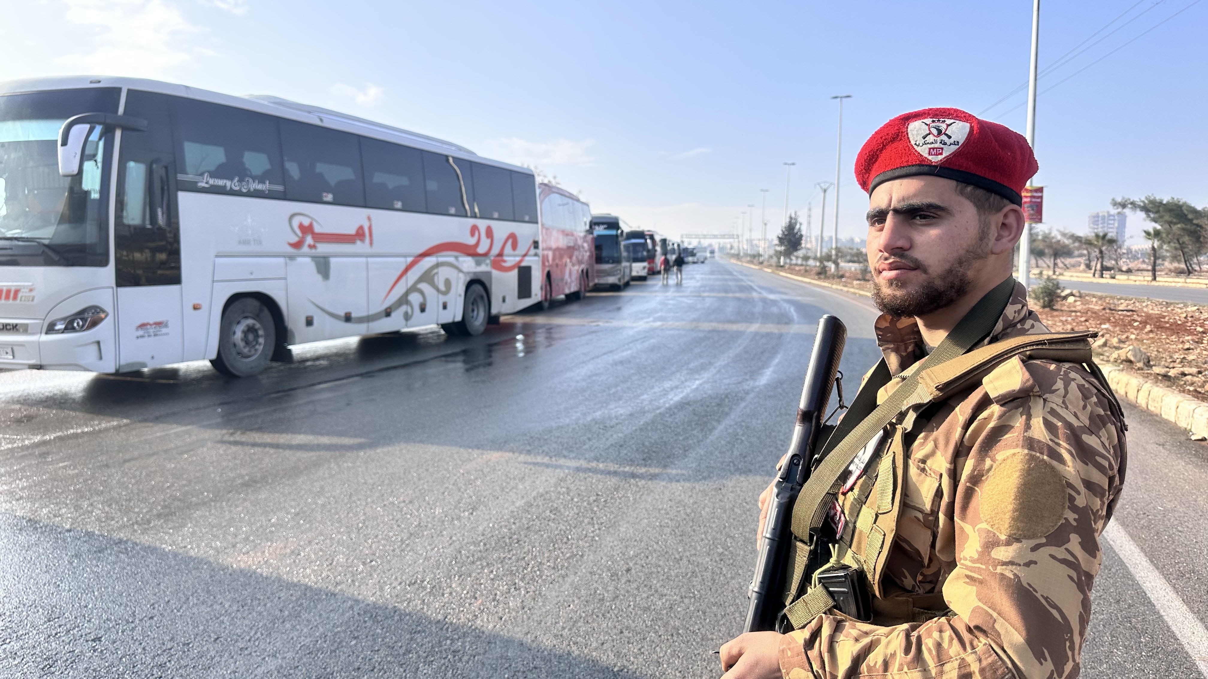 Öte yandan Halep’i terk etmesi beklenen terör örgütü mensuplarını taşıyacak çok sayıda otobüs, Leramun Kavşağı’nda toplanmaya başladı.