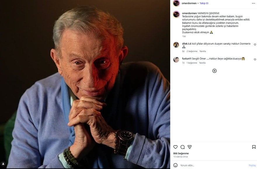 “Tedavisine ağır bakımda devam edilen babam, bugün teneffüsünü daha yeterli destekleyebilmek maksadıyla entübe edildi. Babamın bunu da atlatacağına yürekten inanıyorum. İnşallah önümüzdeki günlerde sizlerle uygun haberlerini paylaşabiliriz. Dualarınızı eksik etmeyin”