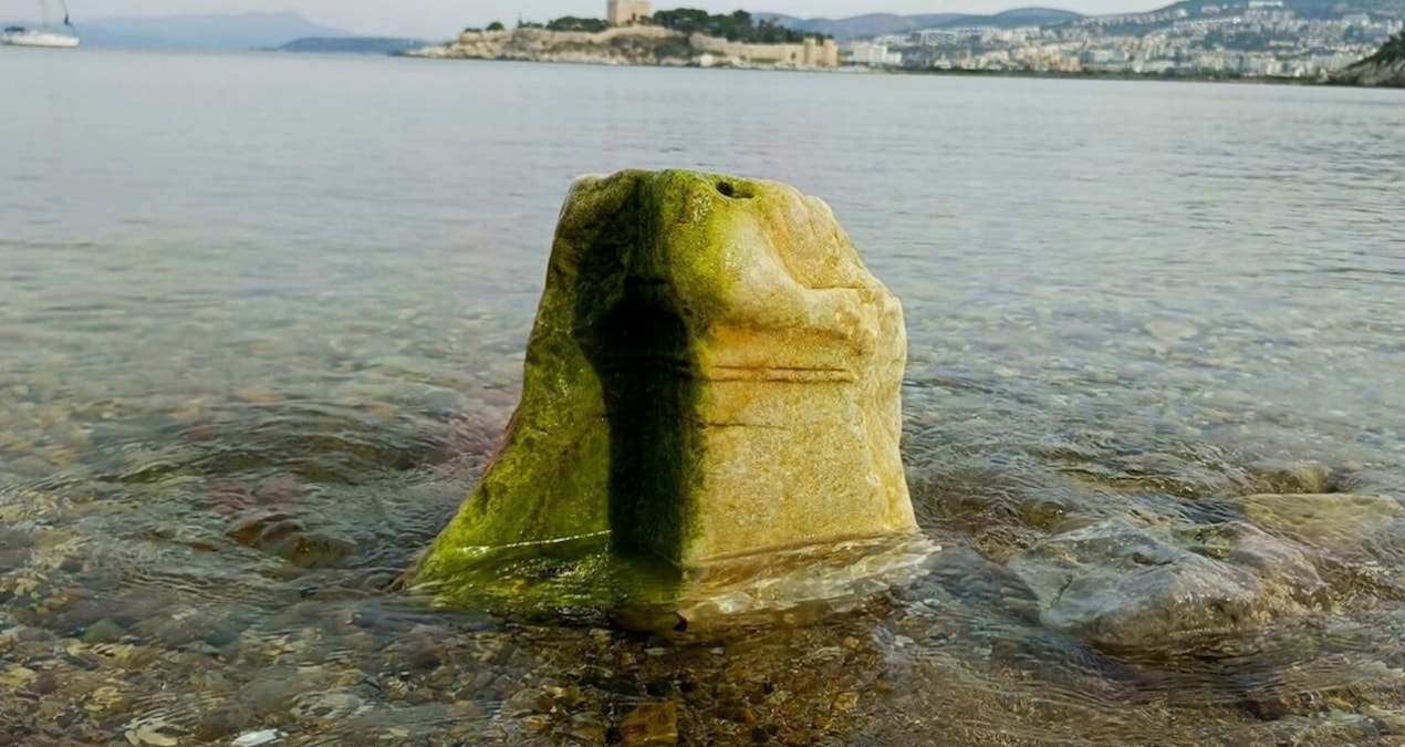Ekosistemi Müdafaa ve Tabiat Sevenler Derneği (EKODOSD) gönüllüleri, 1’inci ve 3’üncü derece arkeolojik SİT alanı olan Yılancıburnu koyunda, saha araştırması yaptıkları sırada denizde mermer bir esas olduğunu fark etti.