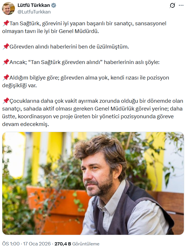 İYİ Parti Kocaeli Milletvekili Lütfü Türkkan, Tan Sağtürk’ün misyon değişikliğine dair toplumsal medya hesabından paylaşım yaptı.
