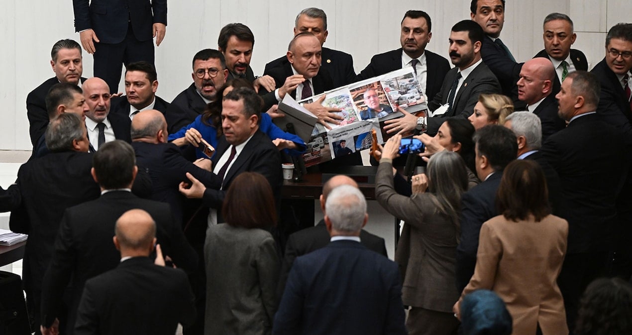 Milletvekilleri kürsü önünde yumruklaştı. AKP’li Tuğba Köksal, Ağbaba’ya “Soytarı” dedi. Ağbaba da “En büyük soytarı sensin” yanıtını verdi.