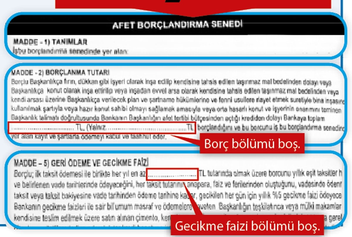 Özel, Yalova’da ‘boş senetçi’ hengamesini başlatan şu tabirleri kullandı: “Bu Murat Bey’i Hataylılar ‘Boş Senetçi Murat’ diye tanımlıyorlar. Dediler ki, ‘En güç günümüzde geldiler, ‘Biz sarsıntı konutlarını bir yıl içinde bitireceğiz’ dediler. ‘Oyu bize verin, görün bir yıl sonra evdesiniz’ dediler. Oyu verdik, bir yıl sonra konutların %2’sini bitirebildiler, iki yıl sonra %30’unu bitirebildiler, üç yıl sonra %70’ini bitirebildiler; bununla övünüyorlar. Üç yıl konteynerde kalmışım, yağmurun çamurun altında kalmışım. Boş senete imza atmazsan meskenin anahtarını vermem’ diyorlar.”