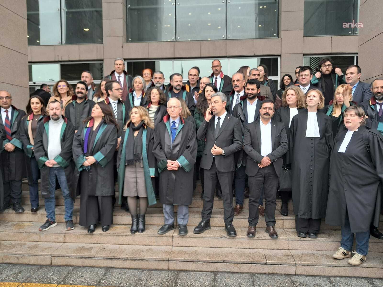 Adliye çıkışında Baro Lideri Prof. Dr. İbrahim Kaboğlu, baro idaresi, milletlerarası gözlemciler ve meslektaşlarıyla birlikte açıklama yaptı.