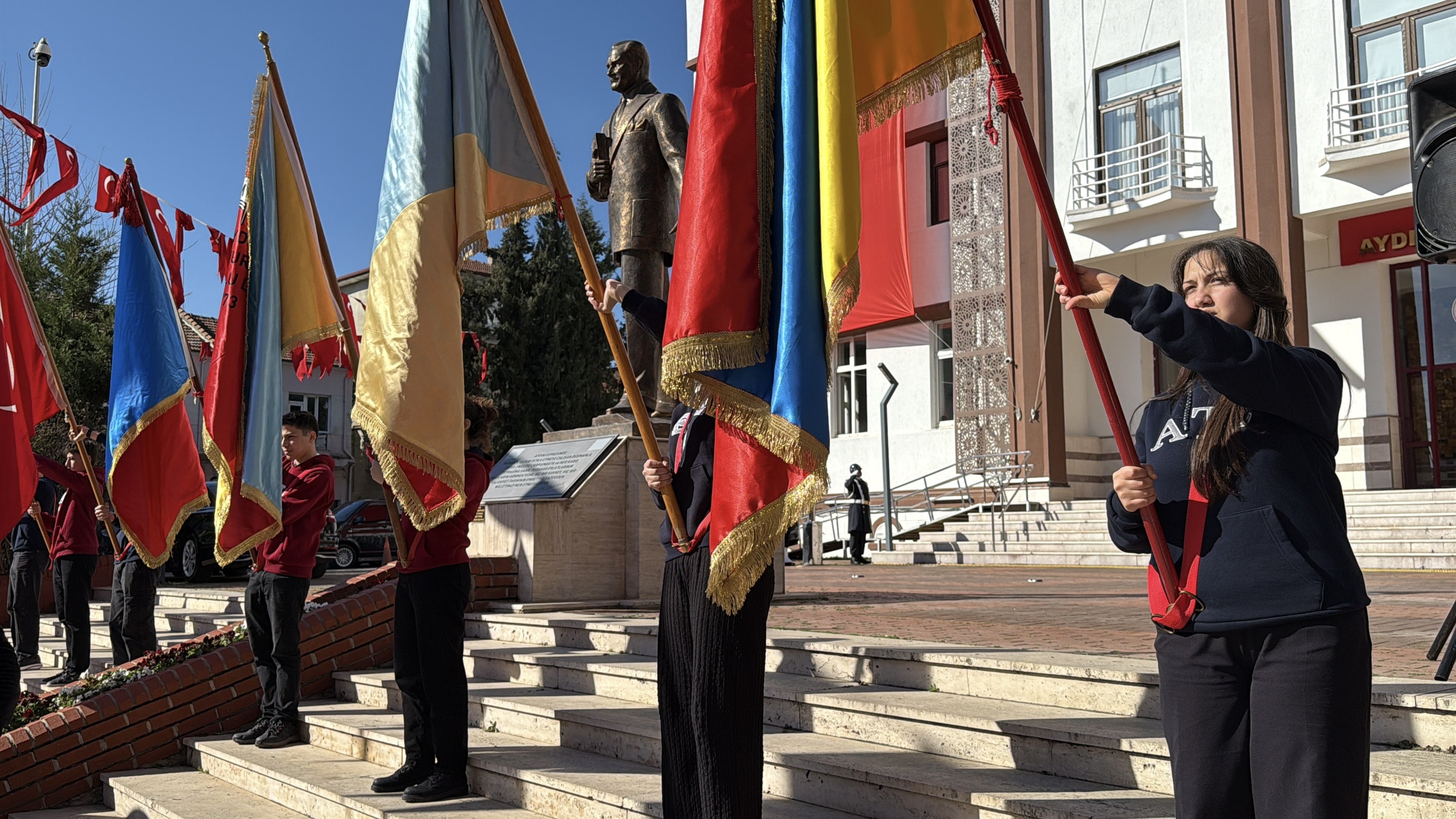Büyük Lider Gazi Mustafa Kemal Atatürk’ün Aydın’a gelişinin 95’inci yıl dönümü münasebetiyle Aydın Valiliği önünde merasim düzenlendi.