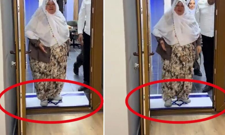 Devamını Oku »Eskişehir’de düzenlenen bir aktifliğe katılan AKP'li Melikgazi Belediye Başkanı Melek Akgün, girişte yere serilen İsrail bayrağının üzerinden geçerek salona girdi.…