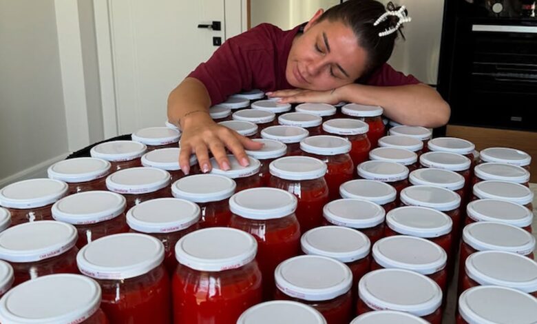 Devamını Oku »Merve Özbey'ın kış hazırlığı... Ünlü müzikçi evvelki gün mutfağa girdi, tek başına onlarca kavanoz domates sosu hazırladı.