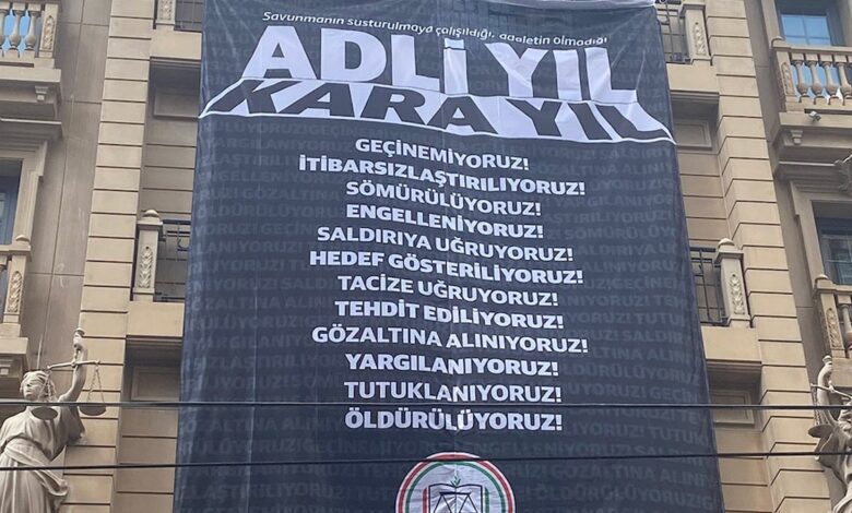 İstanbul Barosu, bu pankartı isimli yıl açılışında baro binasına astı. Geçtiğimiz isimli devir ‘kara yıl’ olarak nitelendirildi. Avukatların yaşadığı sıkıntılar…