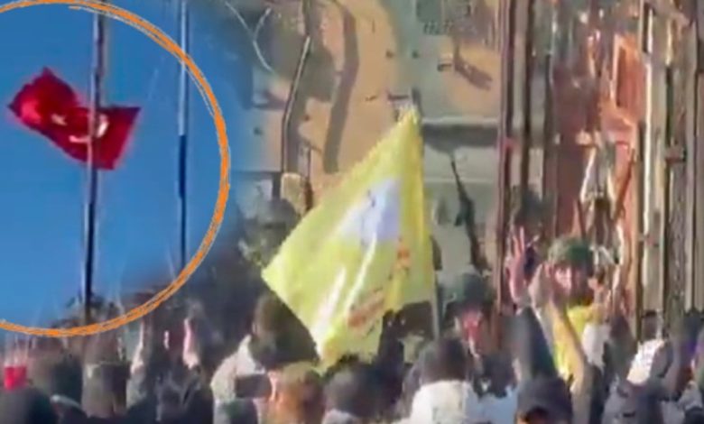 Son dakika haberi: Mardin'in Nusaybin ilçesinde polis barikatlarını aşan bir küme, ellerinde Öcalan bayrakları ile hudut çizgisinde dikili Türk bayrağını…